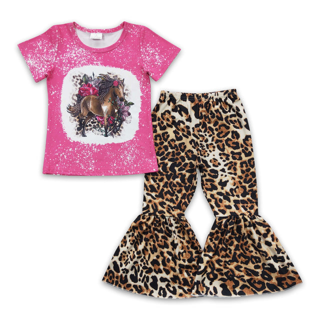 Horse floral shirt leopard pants girls clothing set - 3-6M is backordered and will ship as soon as it is back in stock.