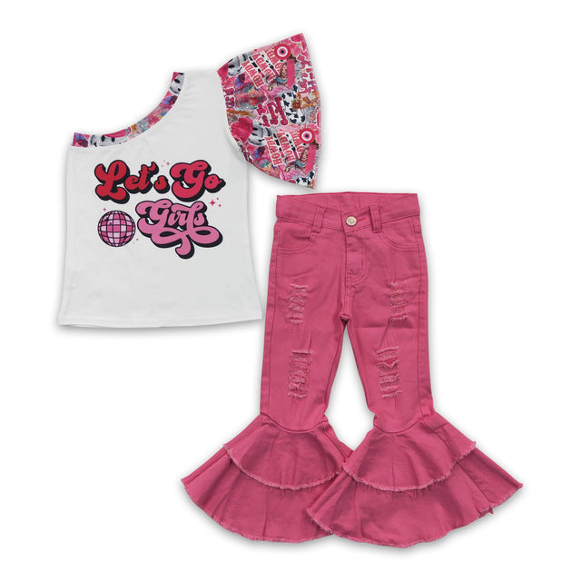 Let's go girls one shoulder shirt jeans baby kids clothes