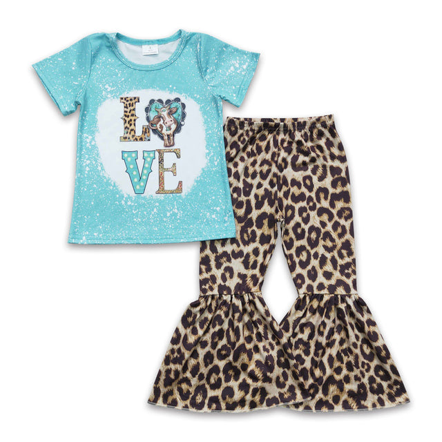 Love cow shirt leopard pants girls clothing set