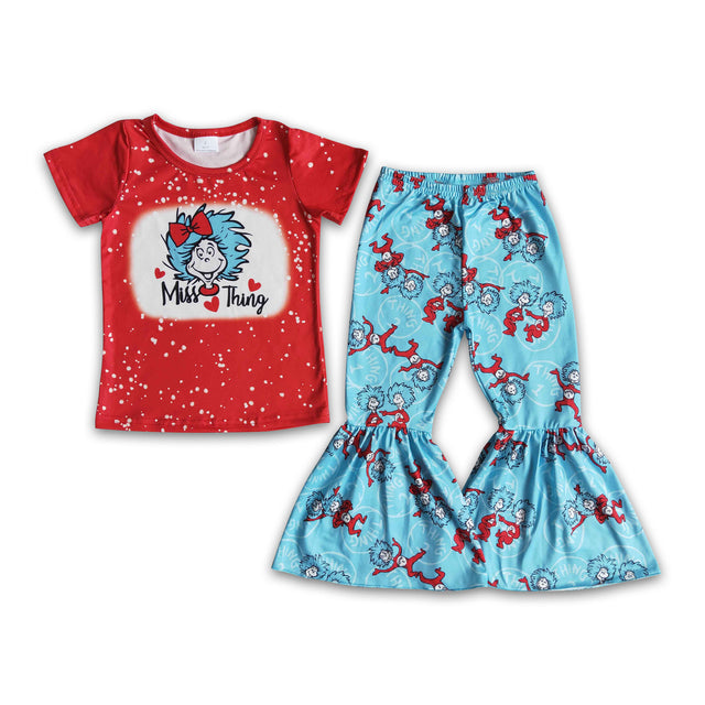 Miss thing red cat bleached shirt bell bottom pants kids girls boutique clothing