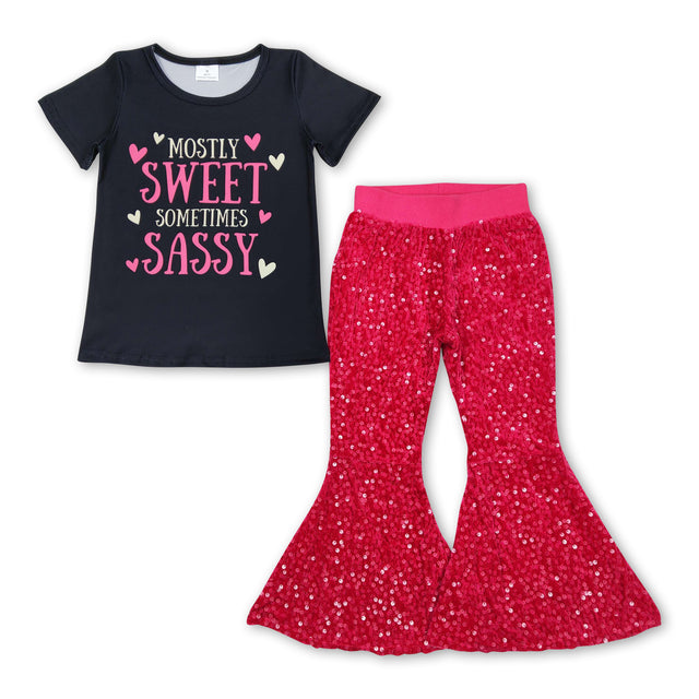 Mostly sweet sometimes sassy hot pink sequin girls clothing