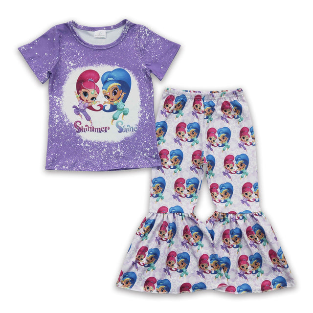 Purple bleached shirt bell bottom pants girls clothes