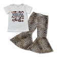 Short sleeves leopard shirt leather pants girls clothing