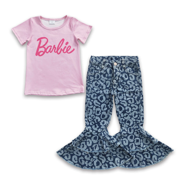 Short sleeves shirt leopard jeans party girls clothing set - 6-12M is backordered and will ship as soon as it is back in stock.
