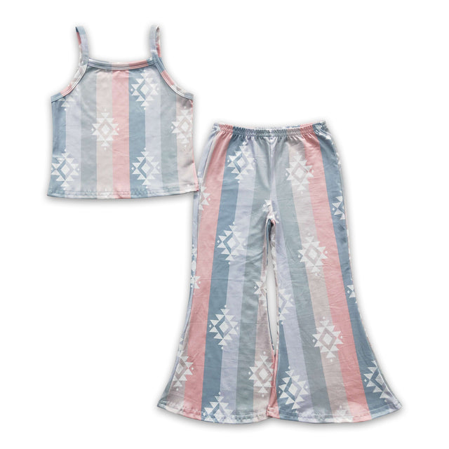 Sleeveless stripe aztec top pants girls clothing set