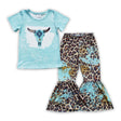Turquoise cow leopard pants kids girls western outfits