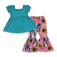 Turquoise tunic sunflower cow leopard pants girls clothes