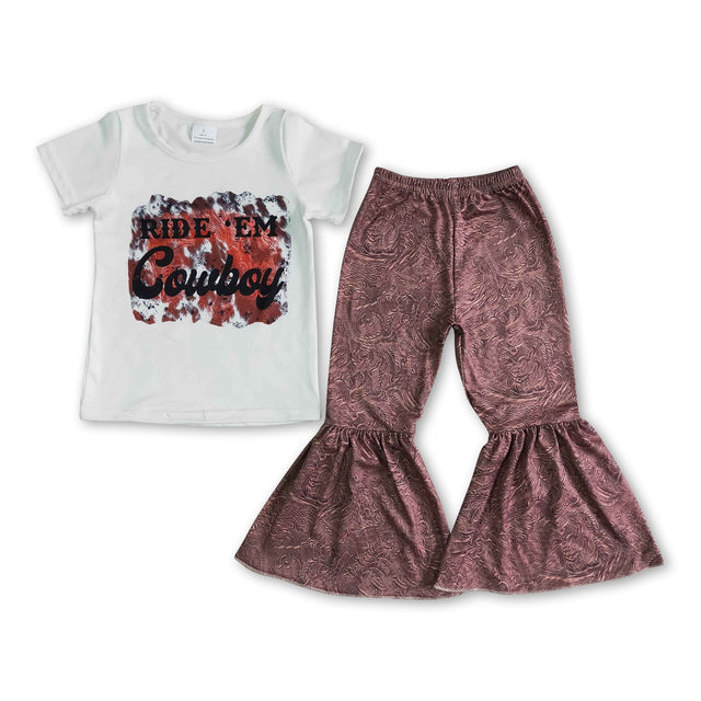 White short sleeves cowboy top pants western girls clothes