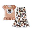 Wild animal mouse print bell bottom pants girls clothing set