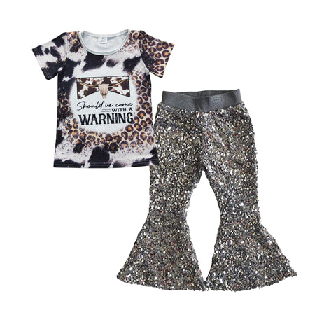 From $3200Unit price /UnavailableBull skull cow leopard shirt grey sequin pants girls outfits