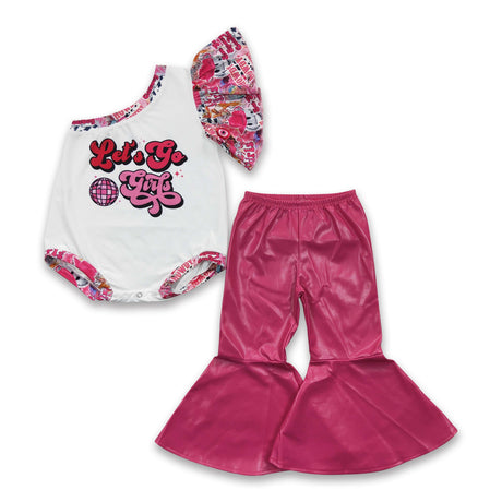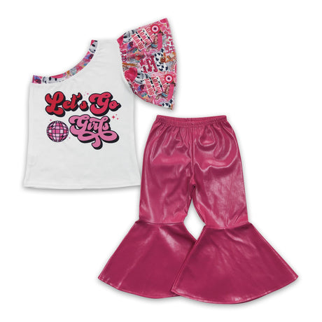 From $2600Unit price /UnavailableLet's go girls one shoulder shirt leather pants baby kids clothes