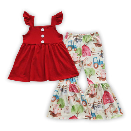 $3500Unit price /UnavailableRed top farm bell bottom pants kids girls clothes