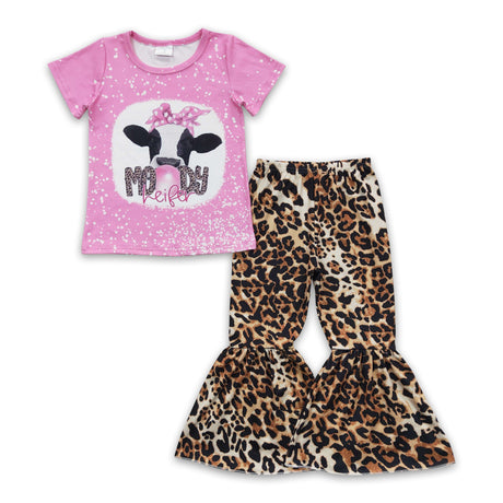 From $2100Unit price /UnavailablePink moody heifer shirt leopard pants girls clothes