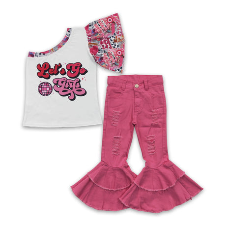From $3100Unit price /UnavailableLet's go girls one shoulder shirt jeans baby kids clothes