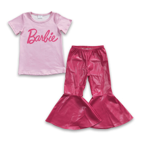 From $3700Unit price /UnavailableShort sleeves shirt bell bottom leather pants party girls outfits
