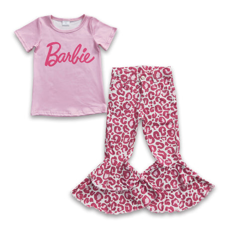From $2100Unit price /UnavailableShort sleeves shirt pink leopard jeans party girls clothing set
