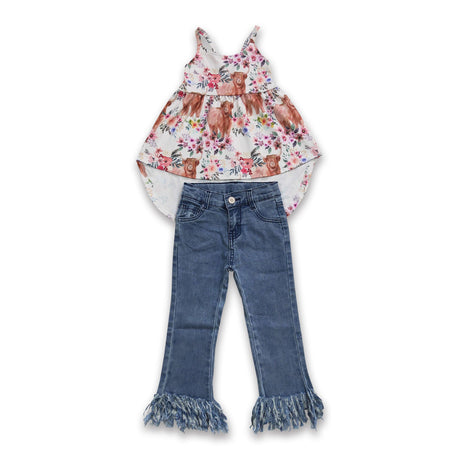From $4000Unit price /UnavailableHighland cow top tassels jeans girls clothing set