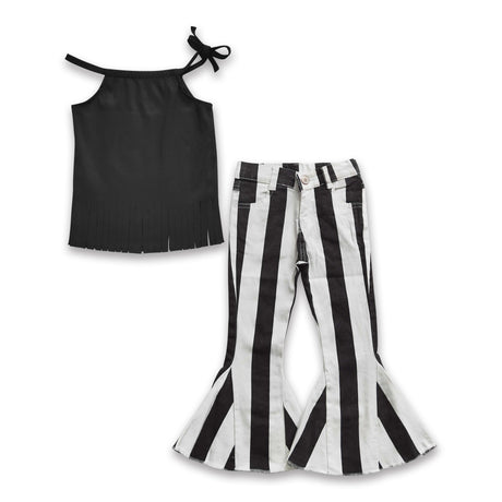 From $4000Unit price /UnavailableBlack tassels sleeveless top black stripe jeans western girls clothes