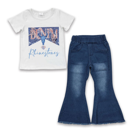 From $2100Unit price /UnavailableRhinestones bull skull shirt denim pants girls outfits