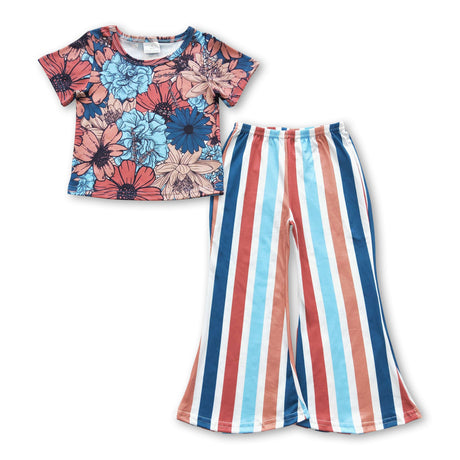 From $2300Unit price /UnavailableShort sleeves floral top stripe pants girls clothing set