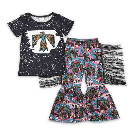 From $2100Unit price /UnavailableBlack cotton top bull skull aztec pants kids girls western clothes