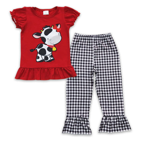 From $2100Unit price /UnavailableCow embroidery cotton shirt plaid pants girls clothes
