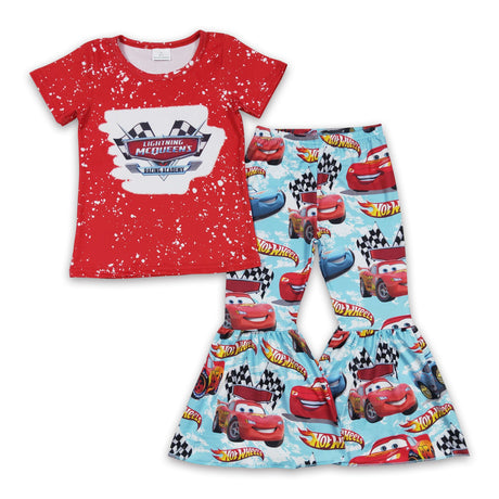 From $2100Unit price /UnavailableRed car bleached shirt bell bottom pants girls clothing set