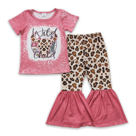 From $2100Unit price /UnavailableShort sleeves bleached shirt leopard pants girls clothing set