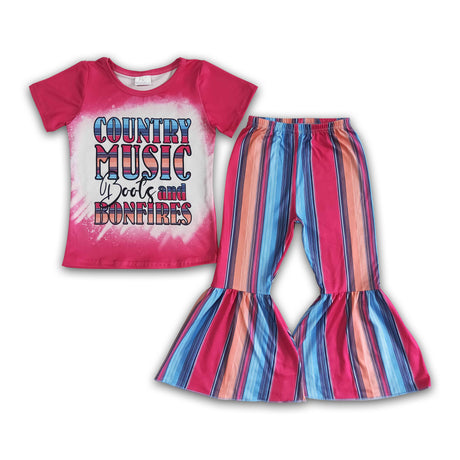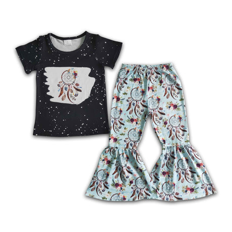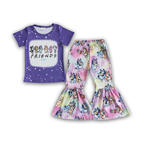 From $2200Unit price /UnavailableShort sleeve magic purple bleached shirt bell bottom pants girls boutique outfits