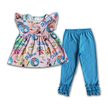 From $2100Unit price /UnavailableFlutter sleeve cat shirt blue icing ruffle pants girls boutique clothes