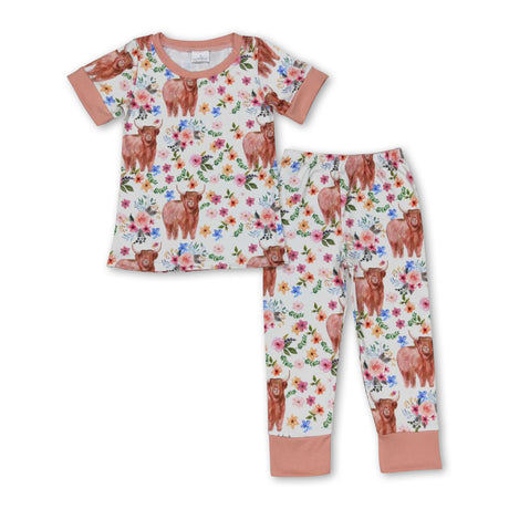 From $2100Unit price /UnavailableKhaki highland cow floral kids girls pajamas