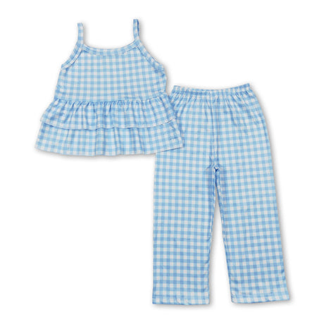From $2100Unit price /UnavailableSleeveless aqua plaid ruffle top pants girls outfits