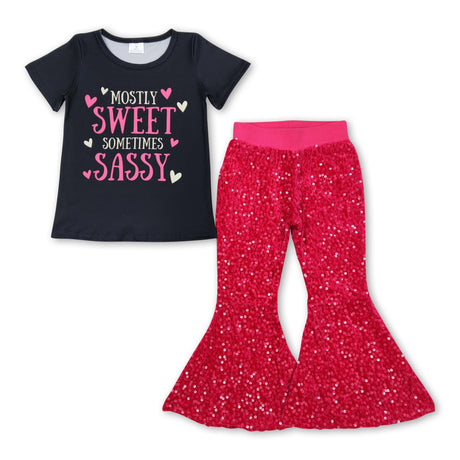 From $2100Unit price /UnavailableMostly sweet sometimes sassy hot pink sequin girls clothing