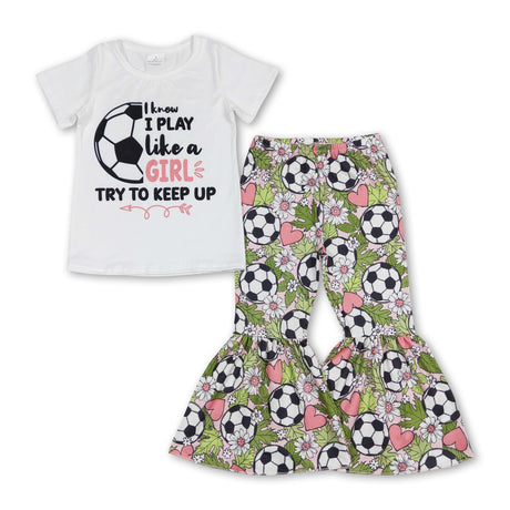 From $2100Unit price /UnavailableWhite soccer top floral pants girls clothing set