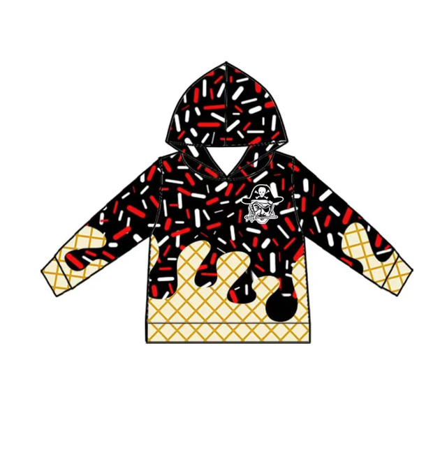 Deadline Aug 24 2025 black red ice cream sprinkle kids team hoodie - 3-6M is backordered and will ship as soon as it is back in stock.