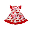 MOQ 3 pcs flutter sleeves W red bows girls team dress