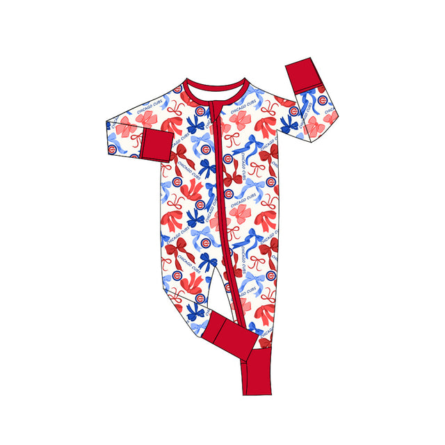 MOQ 3 pcs long sleeves C red blue bows baby team zip romper