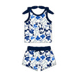 MOQ 3 pcs sleeveless blue bow top shorts girls team clothes