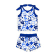 MOQ 3 pcs sleeveless blue bow U K top shorts girls team clothes