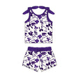 MOQ 3 pcs sleeveless K S purple bow top shorts girls team clothes