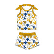 MOQ 3 pcs sleeveless W V bow top shorts girls team clothes