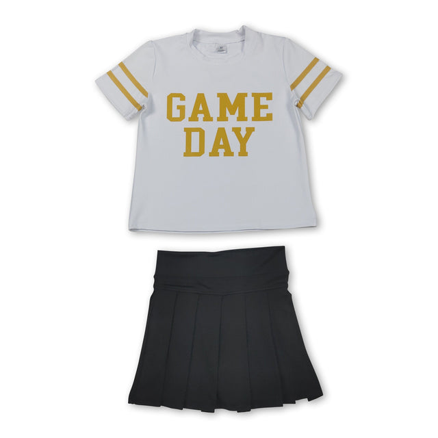 Short sleeves game day top black pleated skirt girls team clothes - 3-6M is backordered and will ship as soon as it is back in stock.