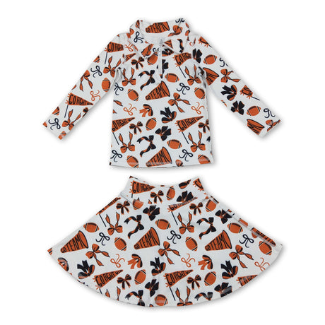 From $3500Unit price /UnavailableOrange bow football top skirt kids girls team activewear set