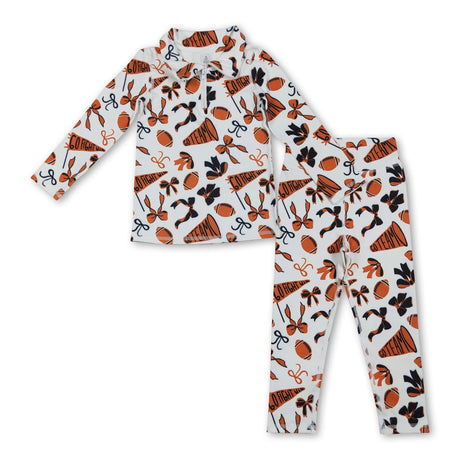 From $3500Unit price /UnavailableOrange bow football zipper jacket leggings girls team yoga set