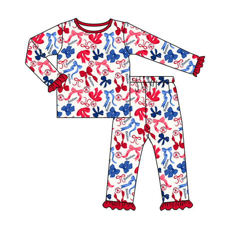 From $2400Unit price /UnavailableMOQ 3 Long sleeves B red blue bow kids girls team pajamas