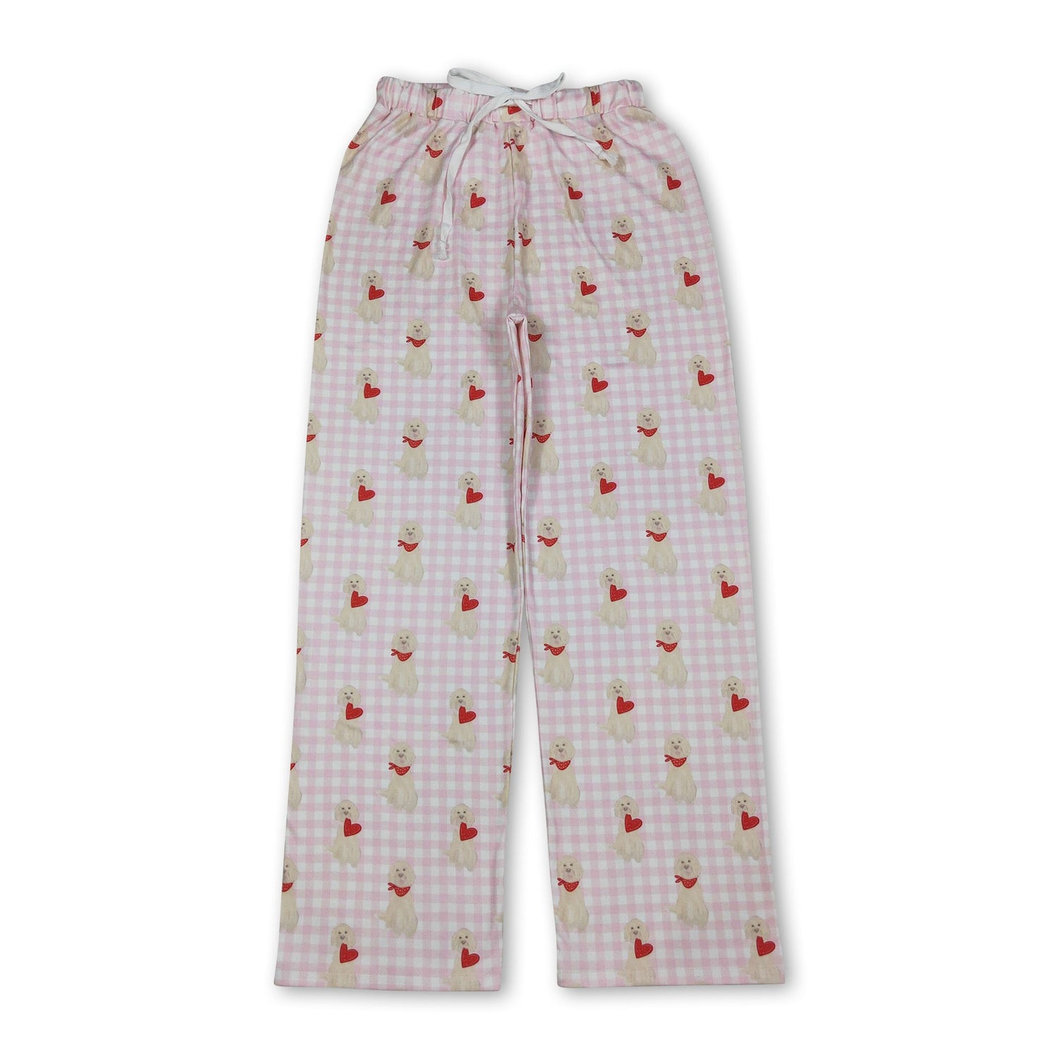 Dog heart plaid adult women valentine's day pants - XS is backordered and will ship as soon as it is back in stock.