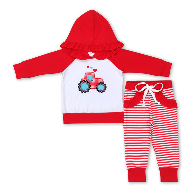 Heart truck hoodie stripe pocket pants girls Valentine's set