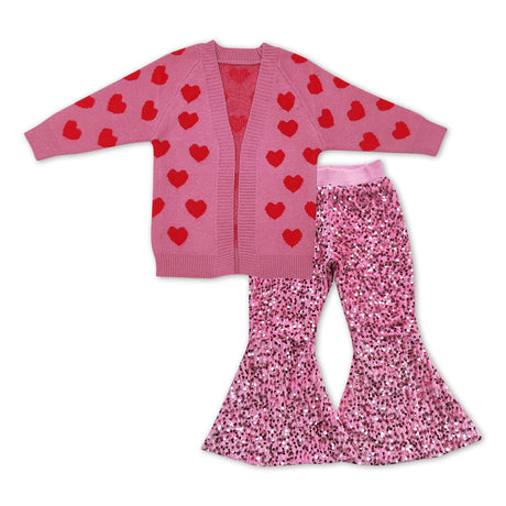 From $5800Unit price /UnavailablePink heart cardigan sweater sequin pants girls valentine's set