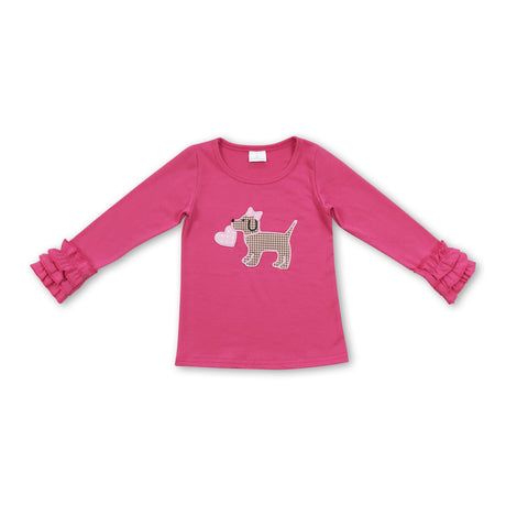 From $1400Unit price /UnavailableHot pink ruffle sleeves dog heart girls valentine's shirt