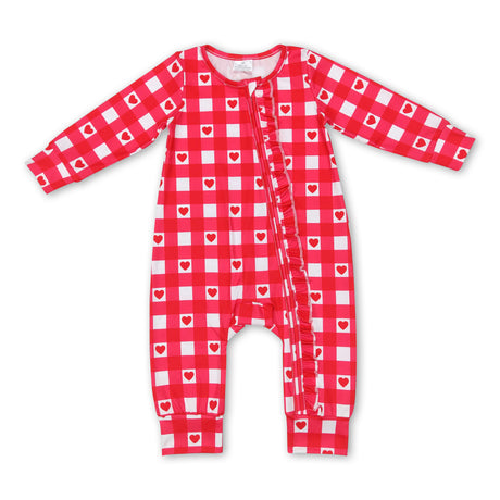 $1800Unit price /UnavailableRed plaid heart baby girls ruffle valentine's zipper romper